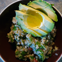 Tabbouleh style buckwheat with a side of avocado. Tasty!