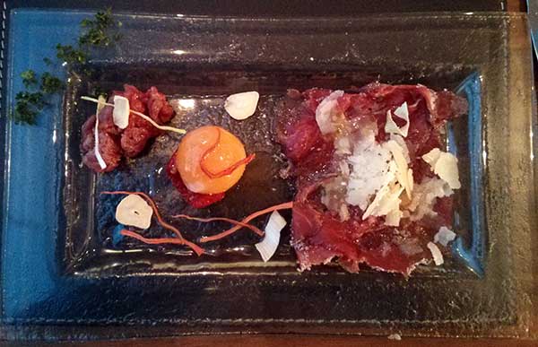 Carne cruda – delicate tartar, carpaccio supported by punchy parmesan and a perfectly cooked quail egg, all truffle scented.