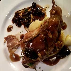 A perfectly cooked leg of rabbit, tasting of field and forest.