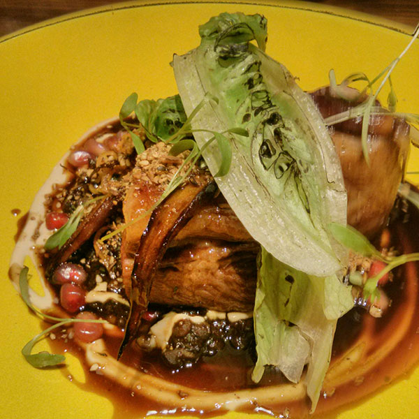 Lamb fillet and shoulder, with lentils, dukkha and charred lettuce.
