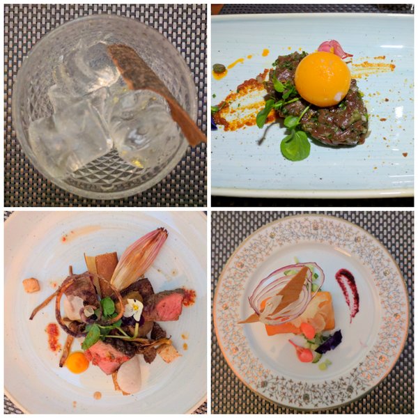 Gin – we’re in the fright place for ut, venison tartare, deconstructed Wellington and gin-cured salmon. All good, all interesting.