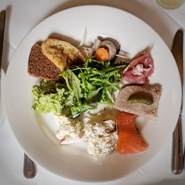 A plate of bread, dips and patés. Everything on that plate was gorgeous but the rollmops blew me away.