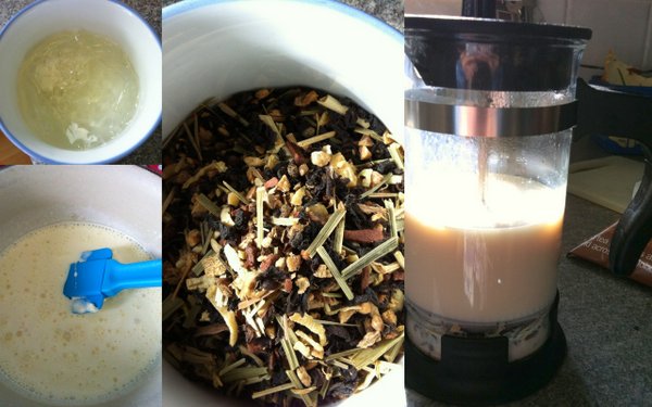 Place the tea into the bottom of a caftiere and pour on the milk. Let it infuse for 15 minutes before pressing the plunger down. Alternatively, place the tea and milk in a jug and strain after 15 minutes