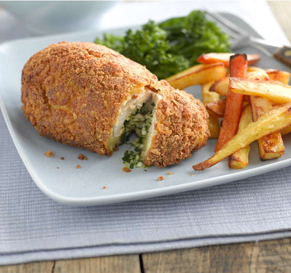 Once the Chicken Kievs are cooked, serve straight away, making sure you remove any cocktail sticks if using